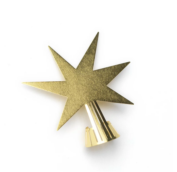 Dieser goldene Sternen-Aufsatz aus Messing passt als Weihnachtsdekoration wunderbar auf die Bäume von The Oak Men.
